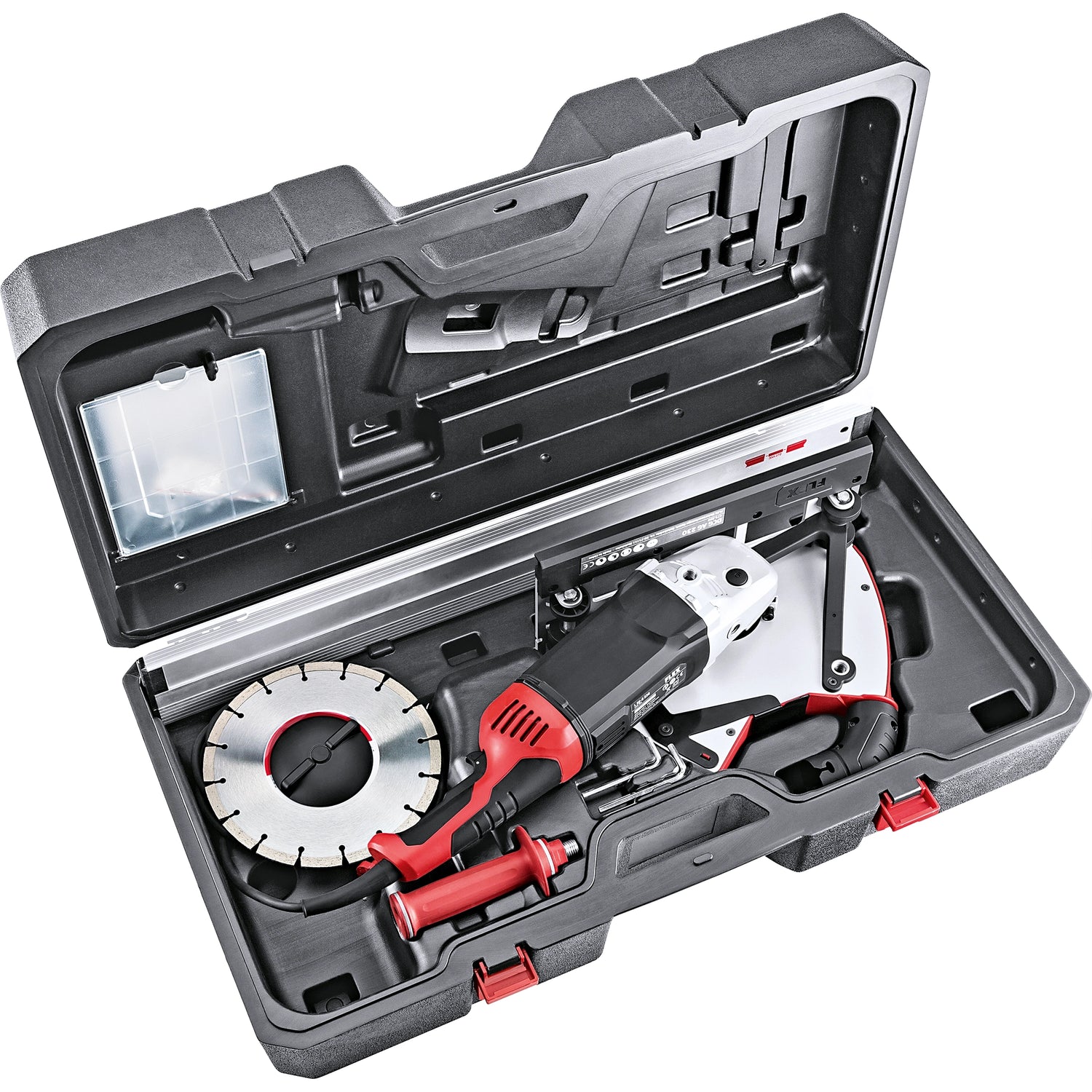 La Flex DCG L 26-6 230 G-Set 2600W offre potenza elevata, gestione efficace della polvere e massima sicurezza grazie ai sistemi elettronici di protezione e alla funzione anti kickback. Completa di disco diamantato e guida, è la soluzione professionale pronta all’uso per tagli profondi e precisi su calcestruzzo.