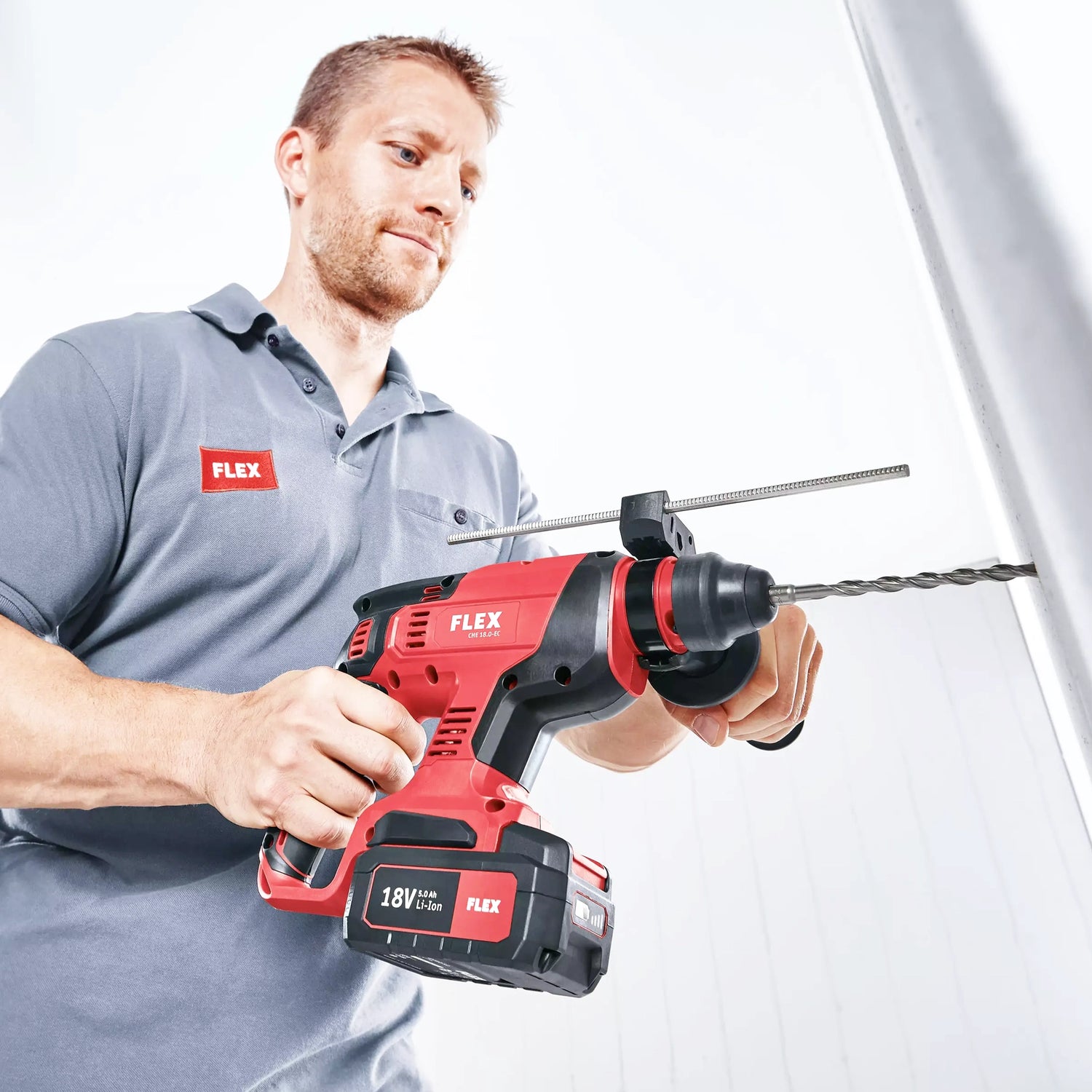 Il Flex CHE 18V EC C serve per forare e tassellare su calcestruzzo, muratura, legno e acciaio, oltre a eseguire operazioni di scalpellatura controllata grazie al blocco della rotazione e alle quattro modalità di lavoro selezionabili.