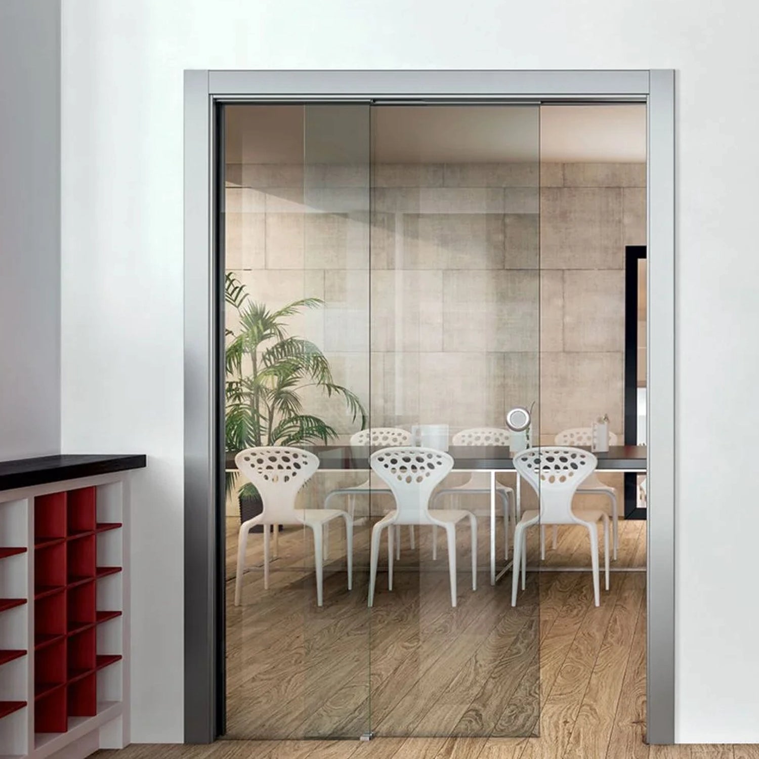 Gli Stipiti Scrigno per anta vetro Remix offrono una soluzione elegante e funzionale per completare il tuo sistema di porte scorrevoli in vetro. Disponibili in alluminio o MDF, questi stipiti sono realizzati con la massima attenzione ai dettagli e sono disponibili in diverse finiture, garantendo la perfetta integrazione estetica e funzionale con la tua porta in vetro.