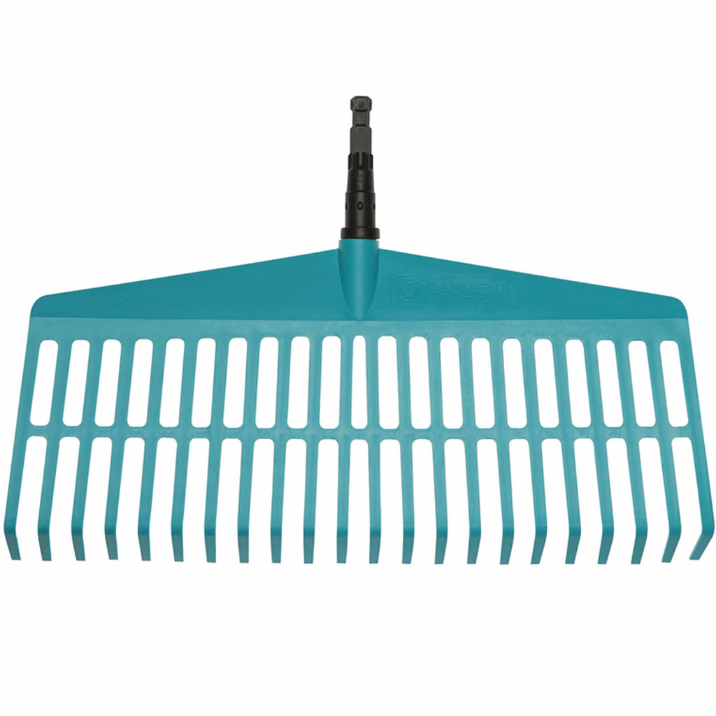 Scopa rastrello Gardena Combisystem è particolarmente indicata per raccogliere foglie, erba tagliata, sfalcio e altro cascame del giardino. I robusti denti in materiale plastico di prima qualità disposti su una larghezza utile di 43 cm consentono di lavorare comodamente senza danneggiare le piante.