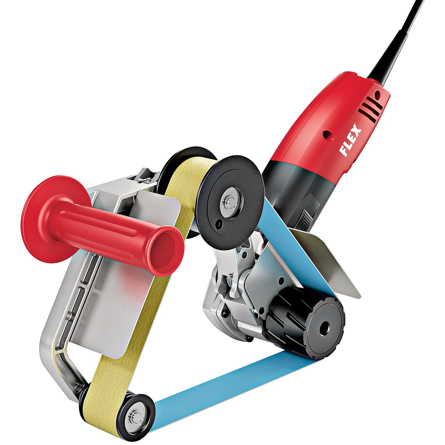 Satin finisher Flex BSE 14-3 INOX Set and TRINOXFLEX pipe belt sander with kit. Microprocessor electronics: pre-selection and stabilization of the speed by means of tachogenerator, soft start, start stop, overload protection and temperature control