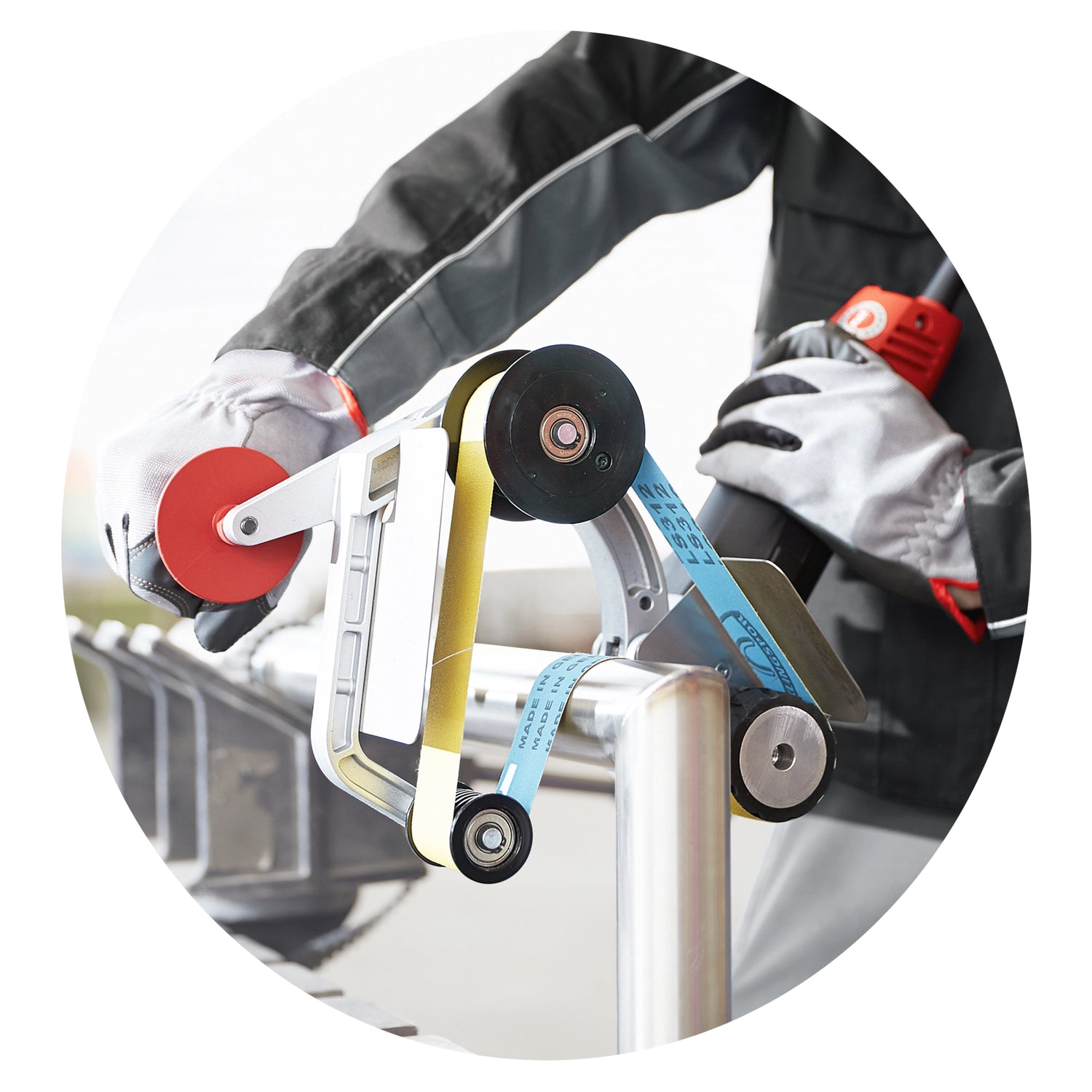 • High quality sanding arm: made of light alloy with 2 pulleys. Wraps the pipe up to a radius of 270°.
