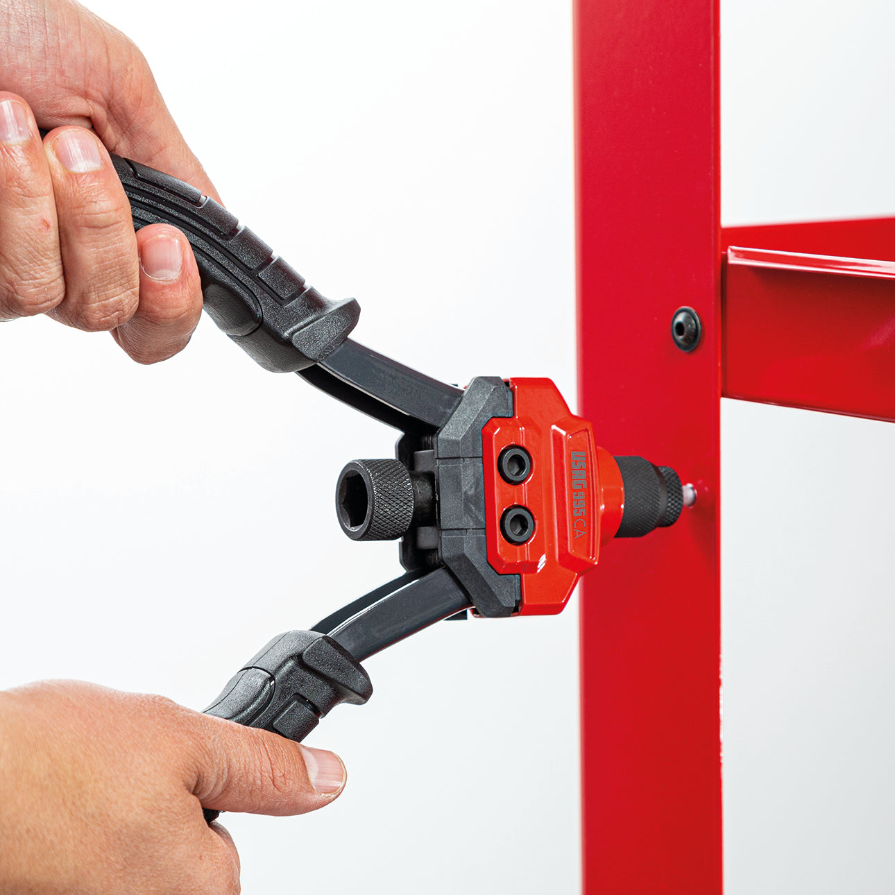 There Riveter Usag 995 CA It is the ideal tool for inserting threaded inserts in various materials, with a compact design and an internal lever system that significantly reduces operator effort during use. Perfect for those looking for professional, precise and easy-to-use equipment.