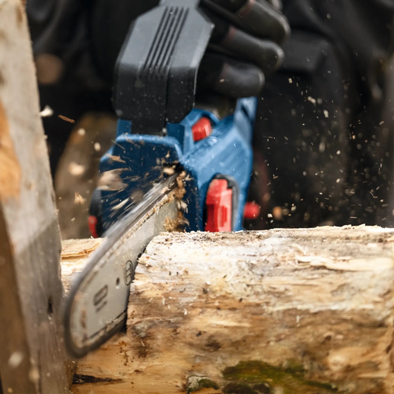 The Pruner Bosch GKE 18V-15, lightweight, high-performance pruning saw, perfect for cutting in tight spaces.