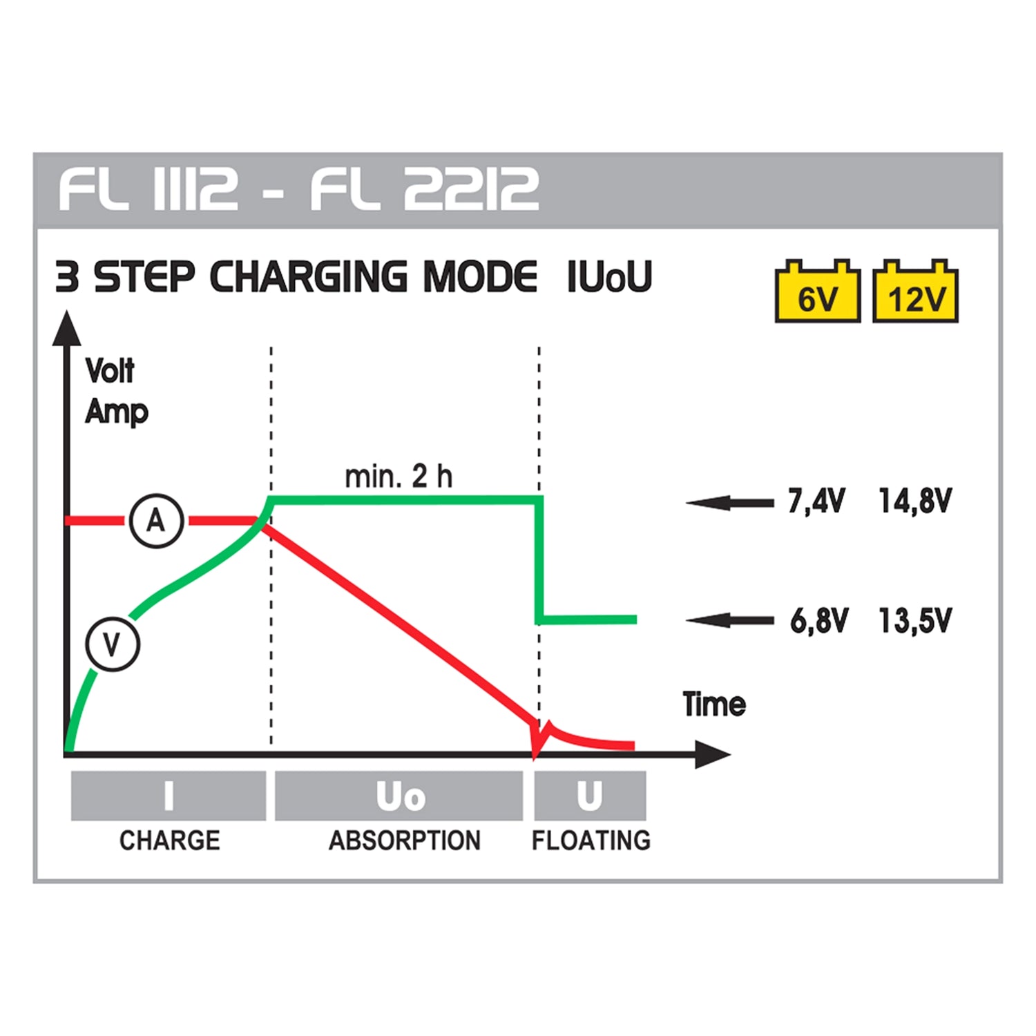 Inverter Battery Charger Deca FL 2212 with electronic control of the charging current and "Floating" charge maintenance. Suitable for charging lead-acid batteries: WET with and without maintenance, AGM, AGM Power, GEL, Start & Stop, Ca/Ca.