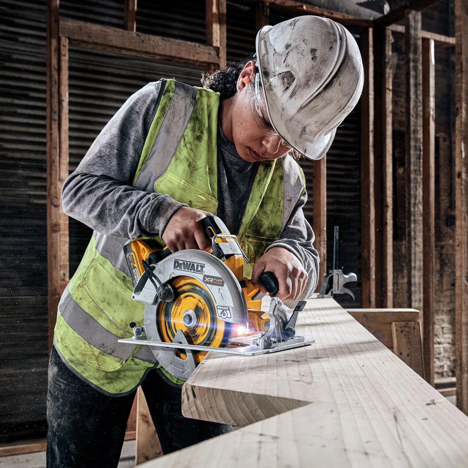 Circular saw Dewalt DCS573H2T-QW 18V 5Ah Brushless Motor DEWALT for greater autonomy, reliability and durability with LED light for better visibility of the cutting line, equipped with additional handle for safe working with two hands.