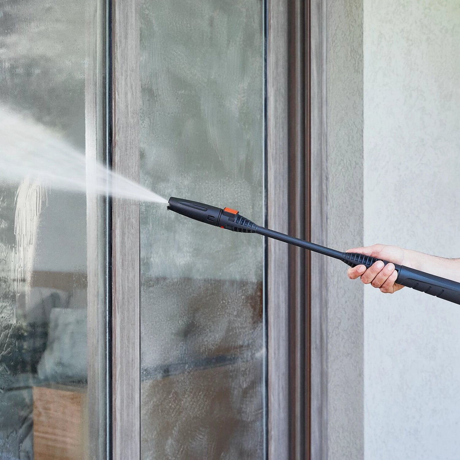 Pressure washer Black+Decker BEPW1300H-QS 1300W theIts maximum pressure of 110 bar makes cleaning yards, walls, windows, furniture, bicycles, motorcycles and cars a quick and easy task.