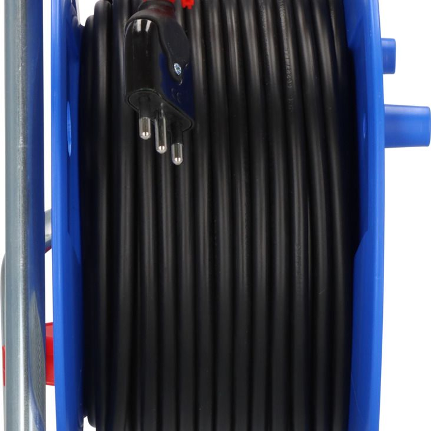 This professional cable reel provides mobile power for tools and equipment in workshops, construction sites, and industrial environments. Perfect for connecting multiple devices simultaneously thanks to its four protected sockets, ensuring safe power distribution with a 50-meter cable length.