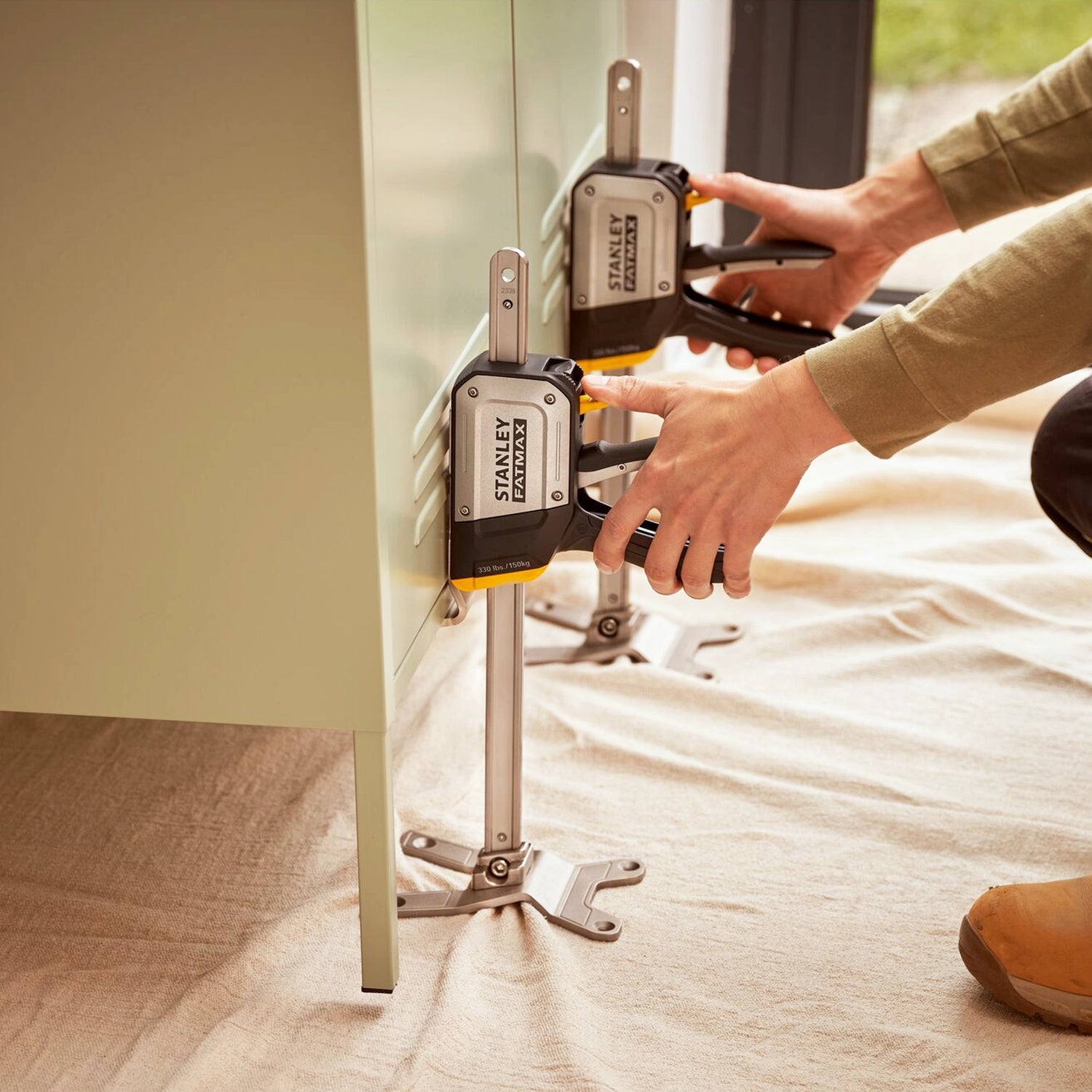 There Pair of Lifters Stanley TradeLift It is the ideal ally for anyone working in the assembly and installation sector, ensuring maximum stability and support for lifting heavy and bulky materials.