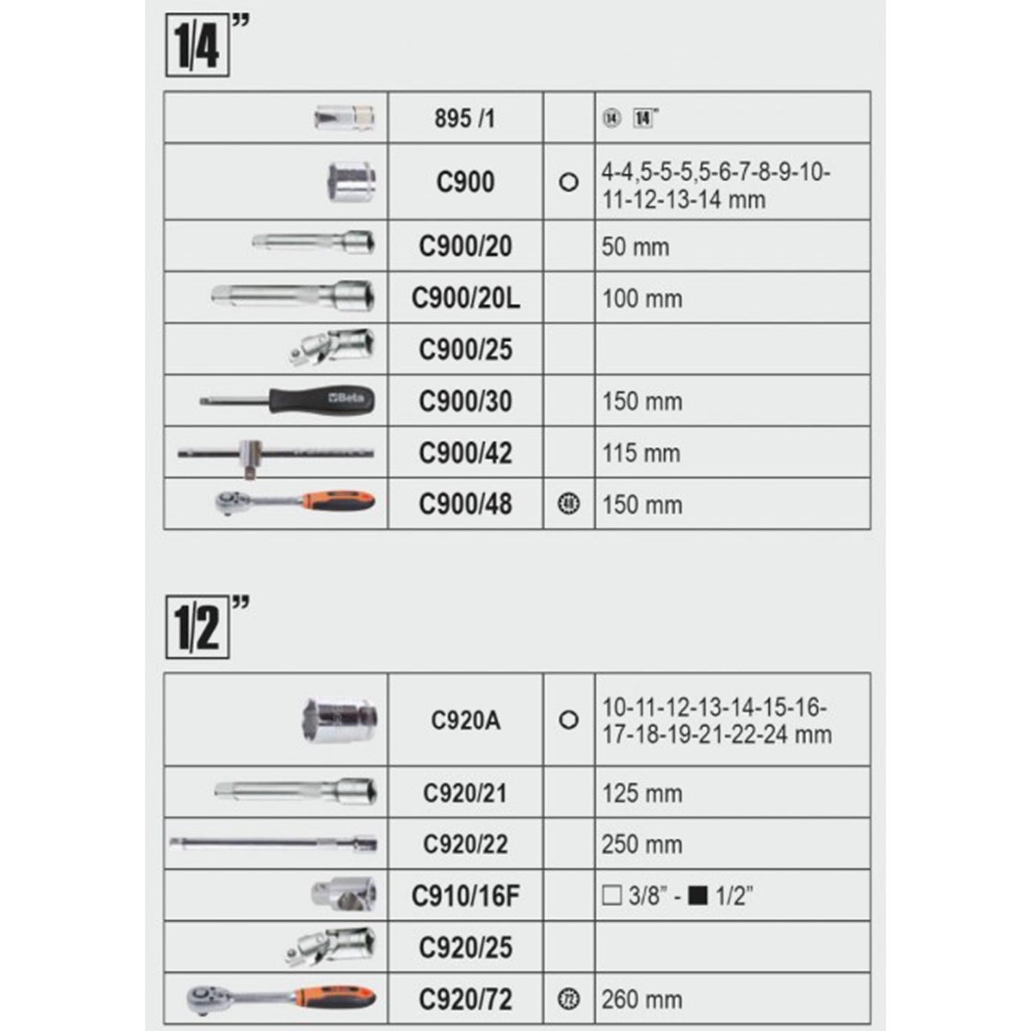 The Trolley Beta 2056T E comes with a wide range of tools for general maintenance, including: