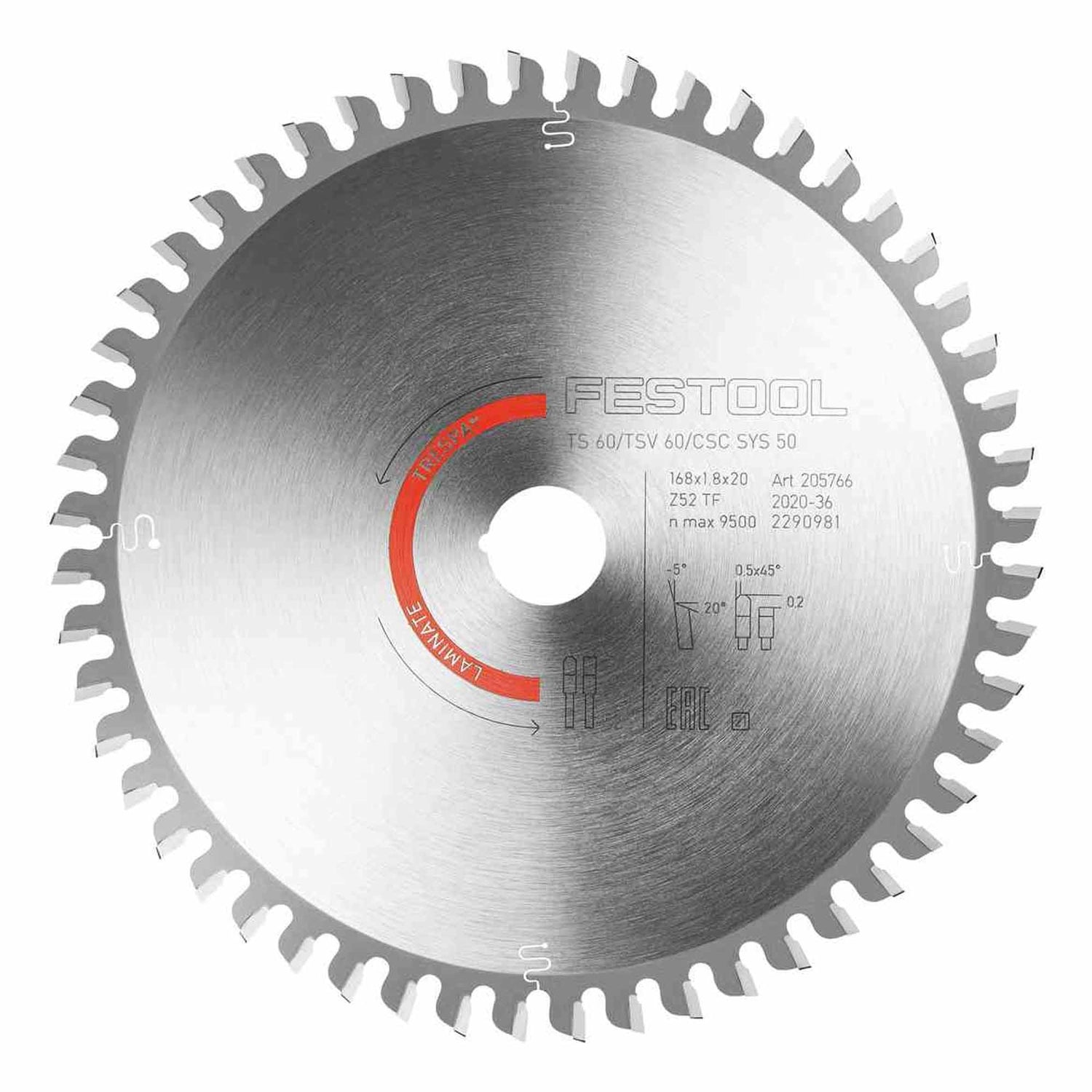 Lama Laminate/HPL Festool HW 168x1,8x20 TF52, per rispondere alle esigenze di applicazioni e materiali diversi. In acciaio di qualità eccezionale e denti della lama in metallo duro a grana finissima.