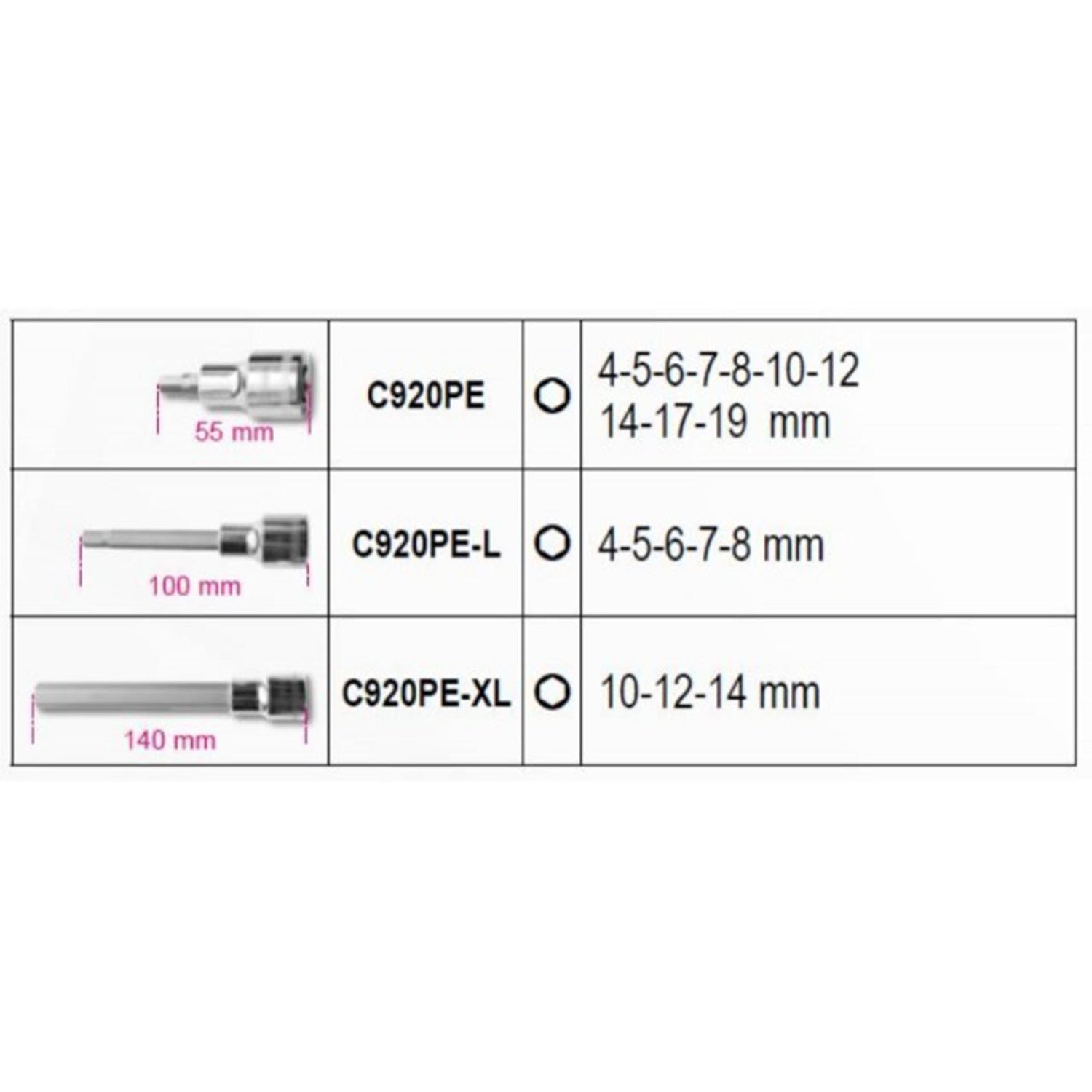 | BW 920PE-XL | Chiavi a bussola maschio esagonale extra lunghe 1/2" 10-12-14 mm | 3 |