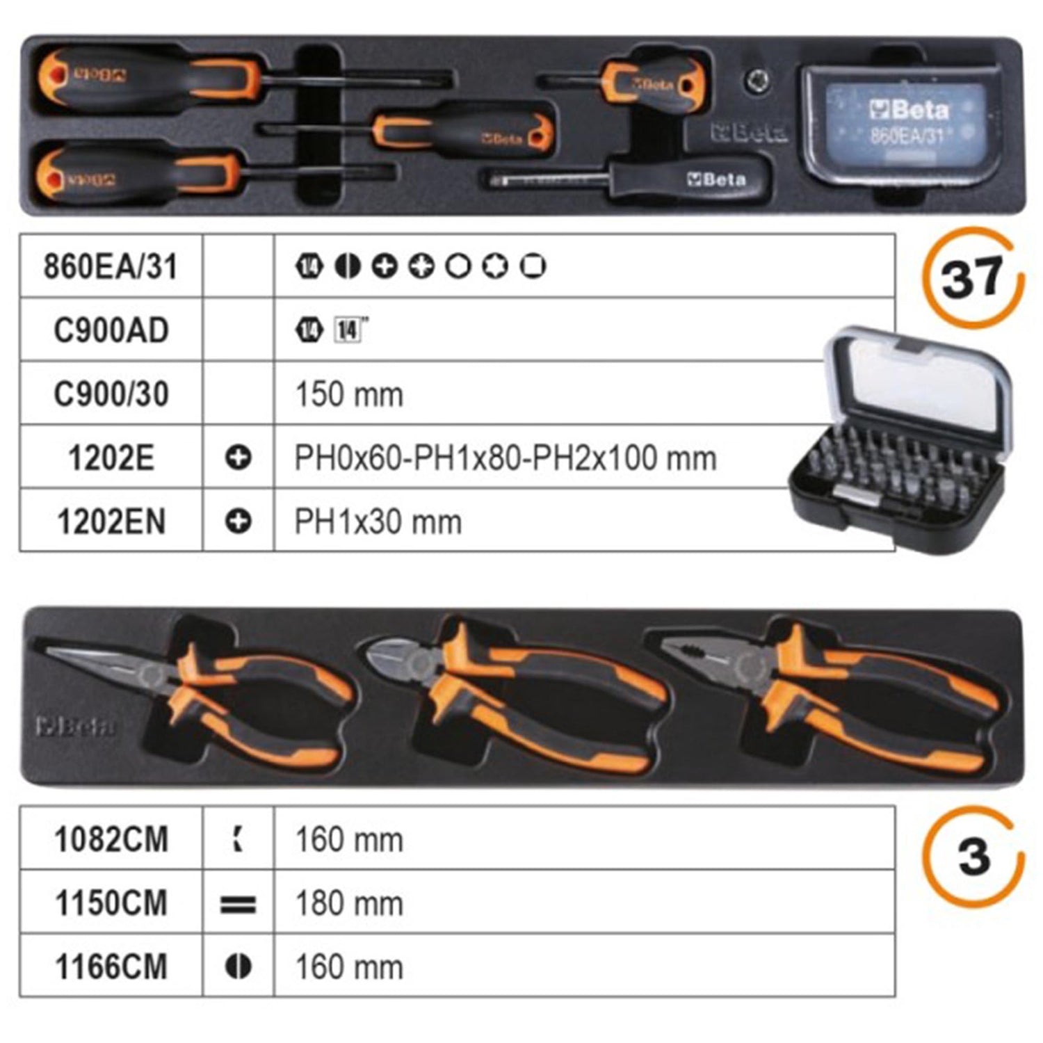 • Organizzazione ottimale: Gli utensili sono ordinati in un termoformato rigido in ABS, garantendo un facile accesso e una perfetta organizzazione.