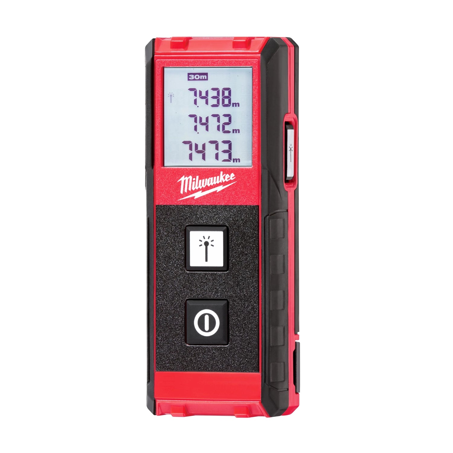 Distanziometro laser Milwaukee LDM 30, estremamente semplice da usare: solo 2 tasti (accensione e misurazione). Grado di protezione da acqua e polvere IP54