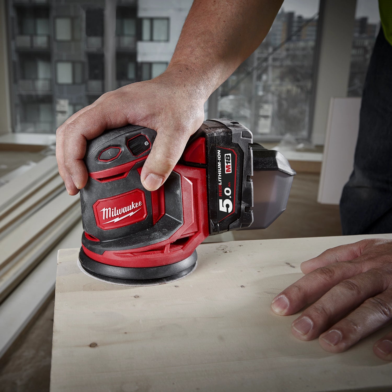Vantaggi della Levigatrice Rotorbitale Milwaukee M18 BOS125-502B: