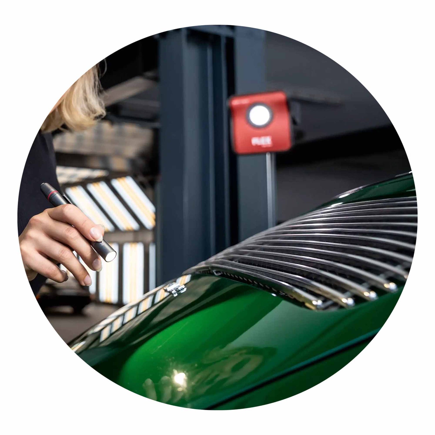 • Illuminazione precisa: Con un’intensità di 140 Lumen, la torcia è ideale per mettere in evidenza imperfezioni e difetti su superfici verniciate o riflettenti.