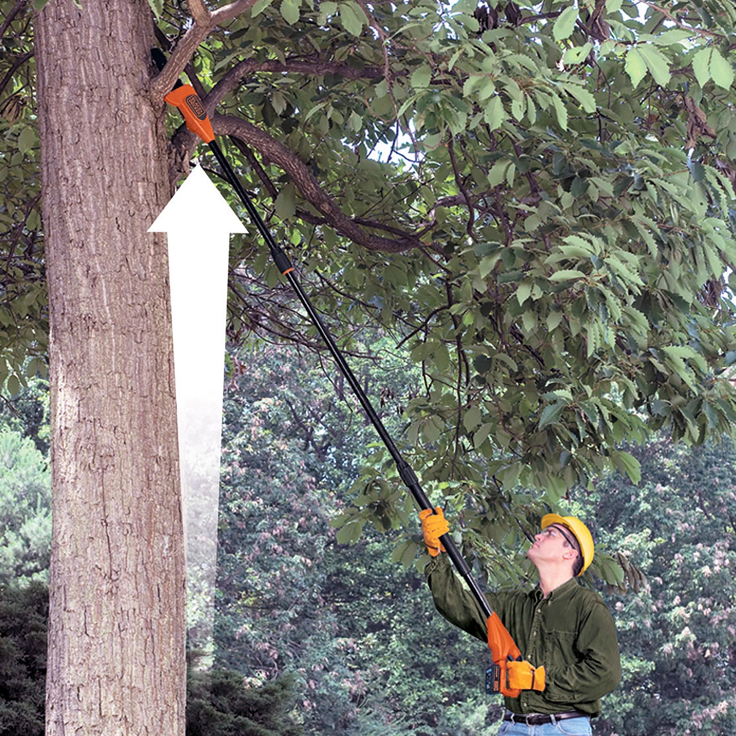 Sega Potatrice Black+Decker GPC1820L20-QW 18V 2Ah è ideale per potare con la massima comodità d'uso anche i rami più alti.