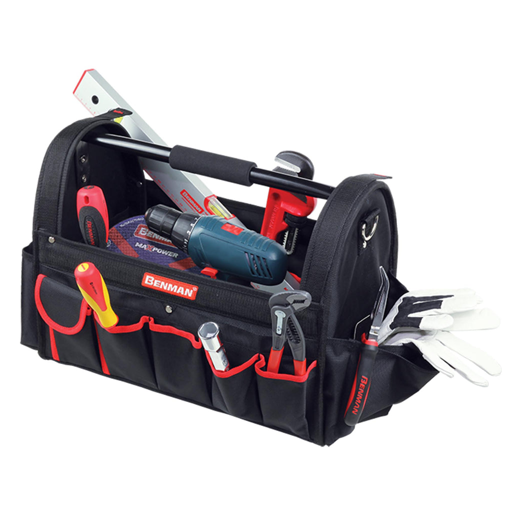 Borsa Porta Utensili aperta Benman, con tubo in acciaio inox e manico in gomma piuma.