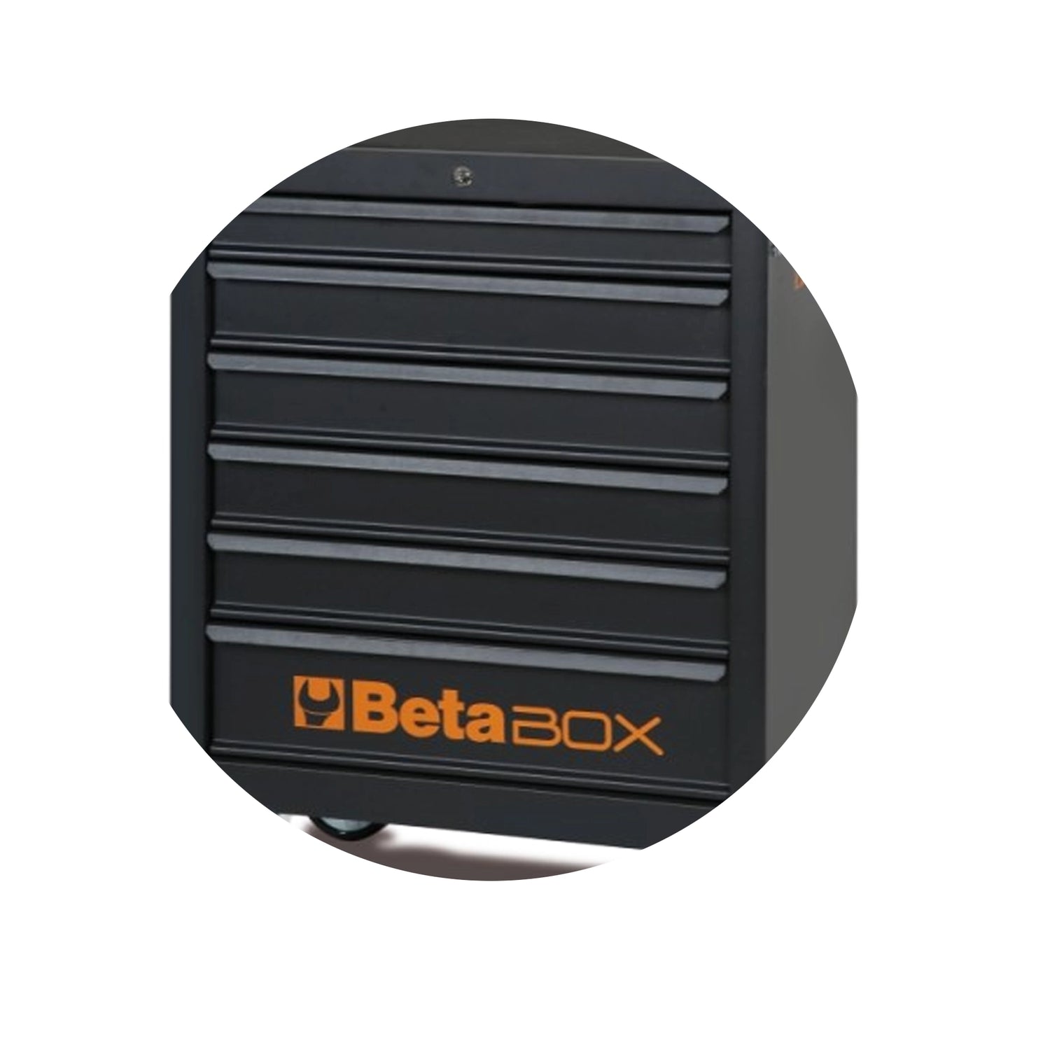 Cassettiera Porta utensili Beta C04 BOX + Omaggio studiato per un pubblico meno esigente, mantenendo sempre i canoni di produzione Beta Tools. Con 6 cassetti 570 x 410 portautensili montati su guide telescopiche a sfera, portata 25kg cad.