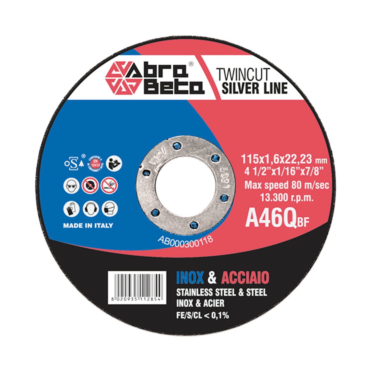Disco da taglio Beta A36Q, di spessore sottile. Utilizzabili universalmente per il taglio di acciai inossidabili, acciai legati ed acciai trattati e non.