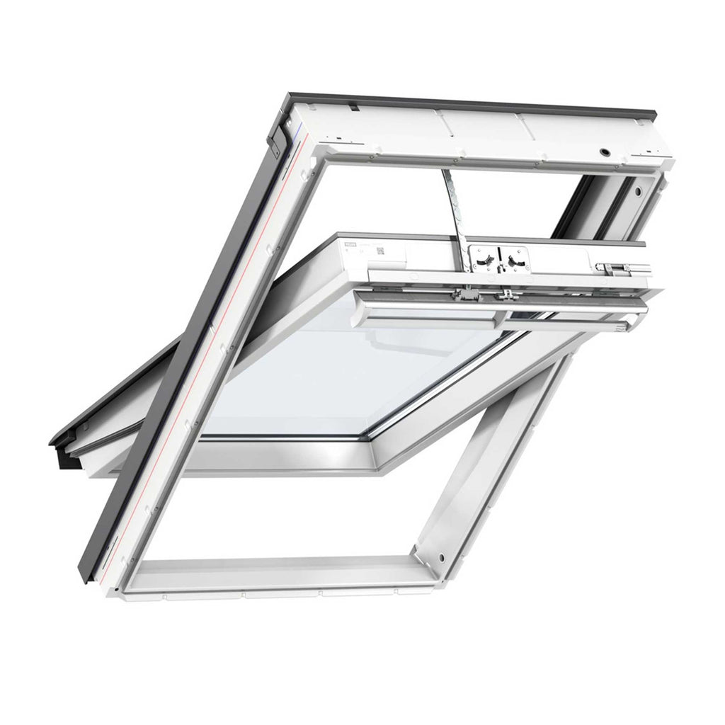 La Finestra Integra Solare Velux GGU 008630, con faccia inclinata, per tetti a falda, in legno e poliuretano bianca con apertura a bilico elettrica elettrica è realizzata in legno rivestito di poliuretano bianco ed è perfetta per gli ambienti moderni.