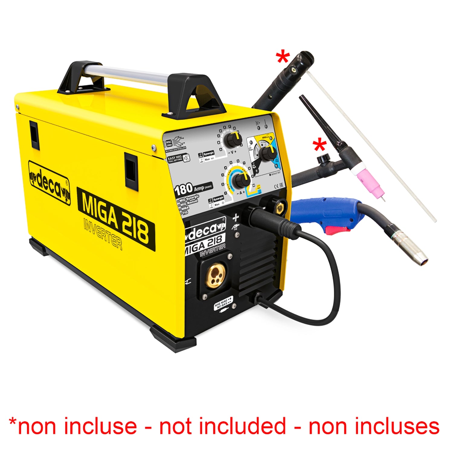 L’Impianto di saldatura Deca MIGA 218 è una soluzione completa e versatile, perfetta per chi cerca un dispositivo facile da usare ma che offra prestazioni professionali. Con la possibilità di saldare in MIG Sinergico, MMA, TIG Lift e Filo No Gas, potrai affrontare qualsiasi progetto, dai lavori di precisione ai progetti più robusti. La sua compatibilità con generatori e il consumo ridotto lo rendono adatto anche per lavori all’aperto o in aree con limitata disponibilità energetica.
