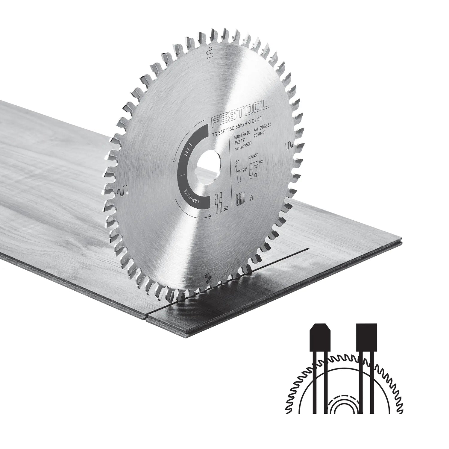 Lama Laminate HPL Festool HW 160x1,8x20 TF52 – Precisione e Resistenza per Tagli Perfetti