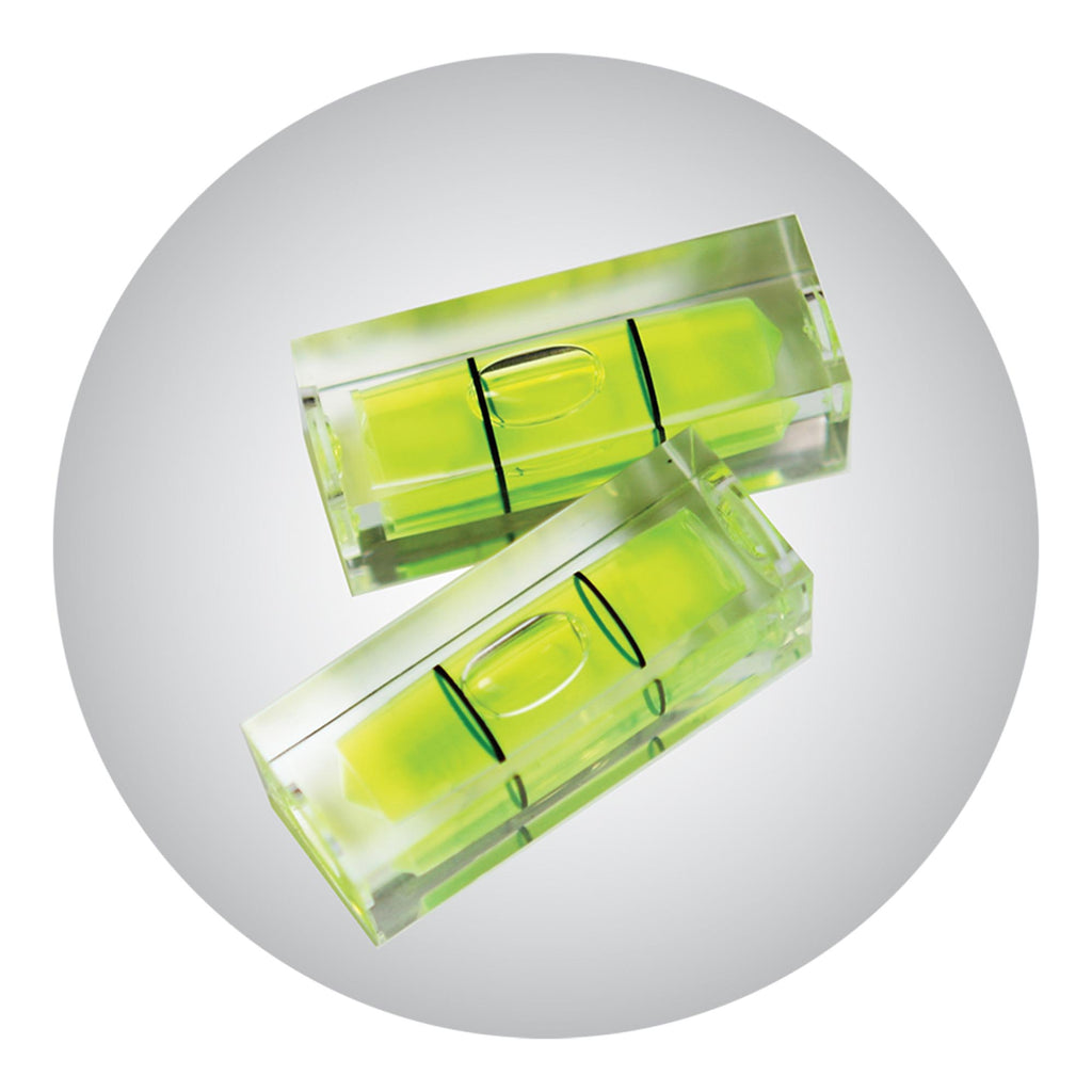 - Fialette per bolla in materiale acrilico antiurto tarate con la massima precisione a 0,5 mm/m (0,029°)
