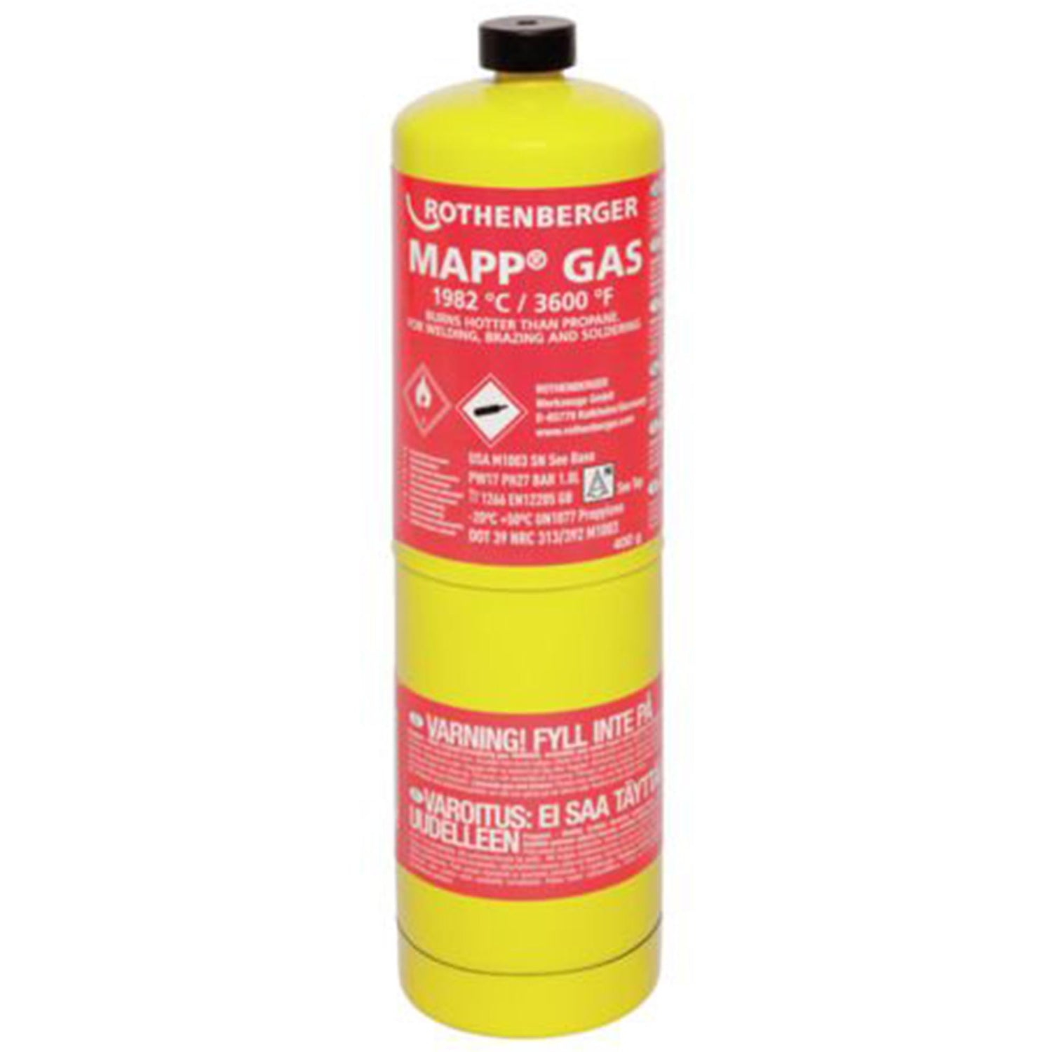 Mapp Gas Rothenberger US 1" è un gas speciale per le più elevate esigenze di brasatura e saldatura in qualsiasi posizione, anche in testa (360°).