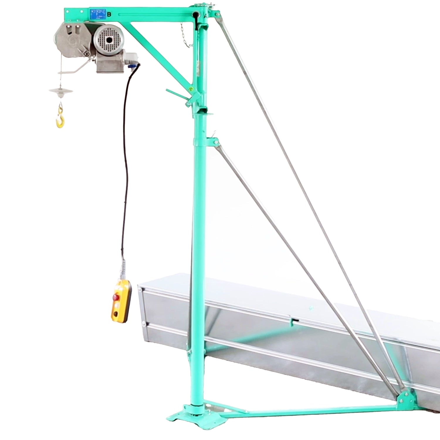 • Portata massima costante: La portata di 150 kg rimane invariata per tutta l’estensione del braccio, permettendo di sollevare materiali senza il rischio di urti contro le strutture.
