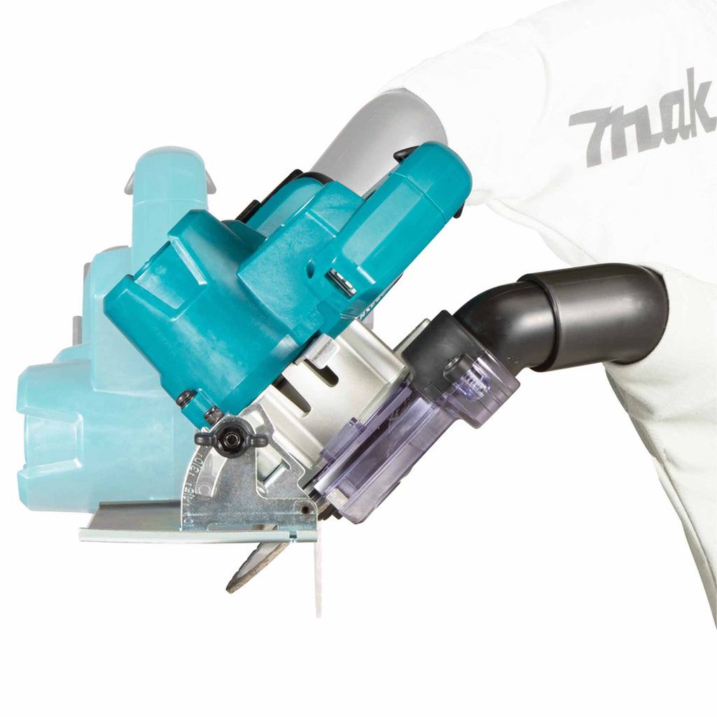 La Sega Diamantata Makita DCC500ZJ 18V dotata do motore brushless, offre le migliori prestazioni di aspirazione in ogni situazione grazie al sacco raccoglipolvere ruotabile a 360°.