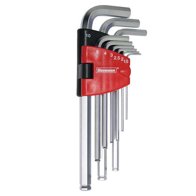 Set di Chiavi esagonali lunghe Benman 9 pz, con testa turball brevettata che combina una testa dritta con una di tipo turball.