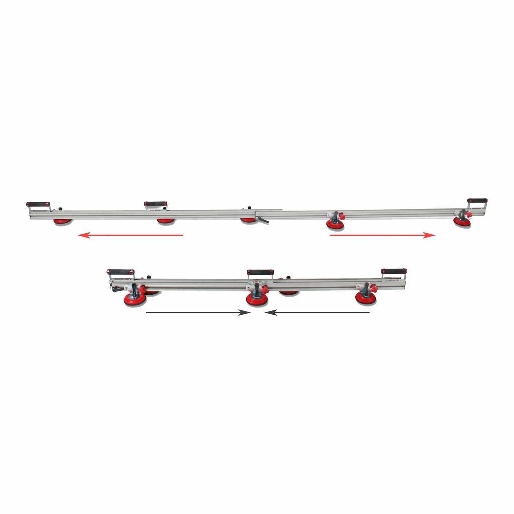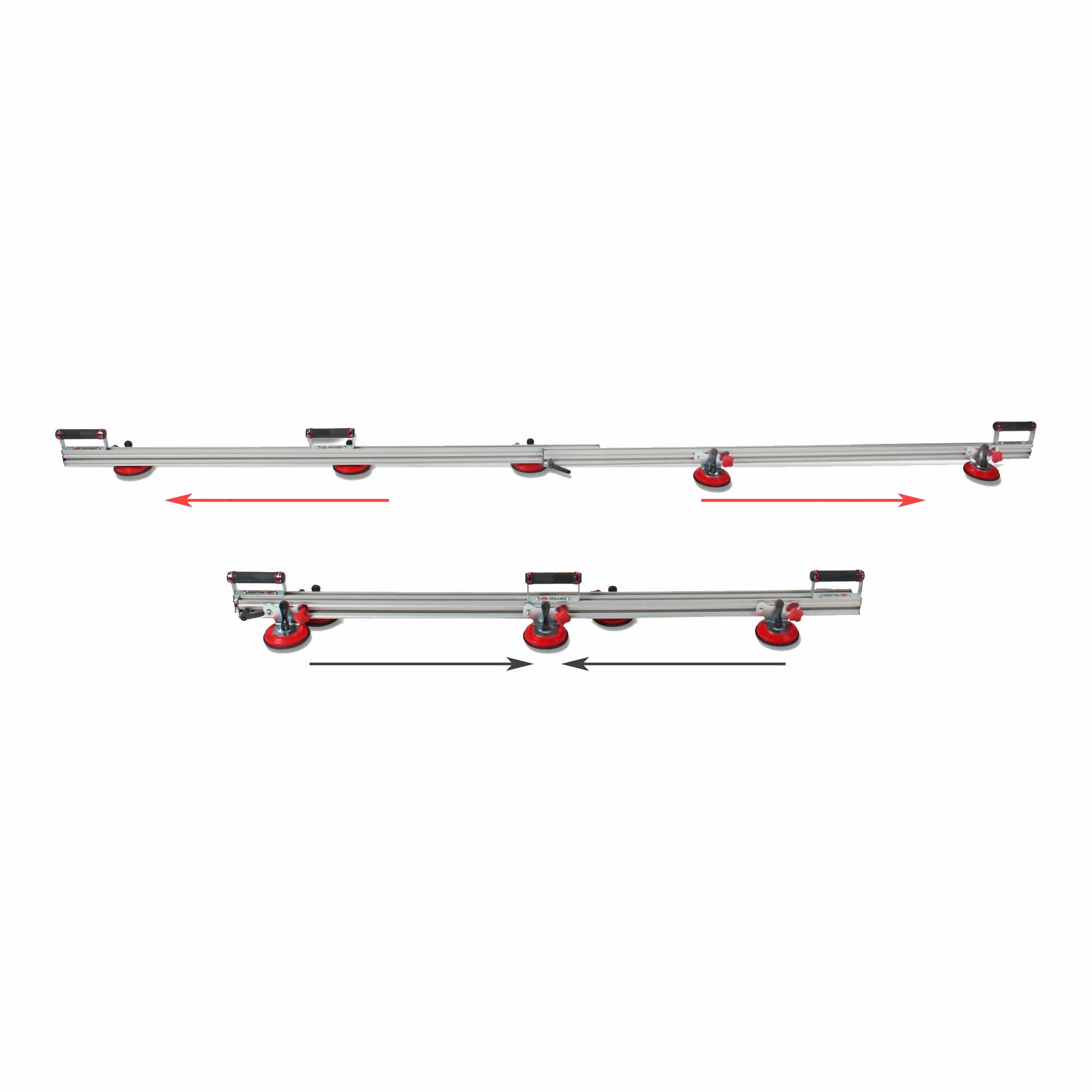 Grazie alla sua struttura in alluminio retrattile, consente di trasportare lastre fino a 320 cm di lunghezza e un peso massimo di 80 kg, che può essere aumentato a 120 kg con il set di traverse opzionale.